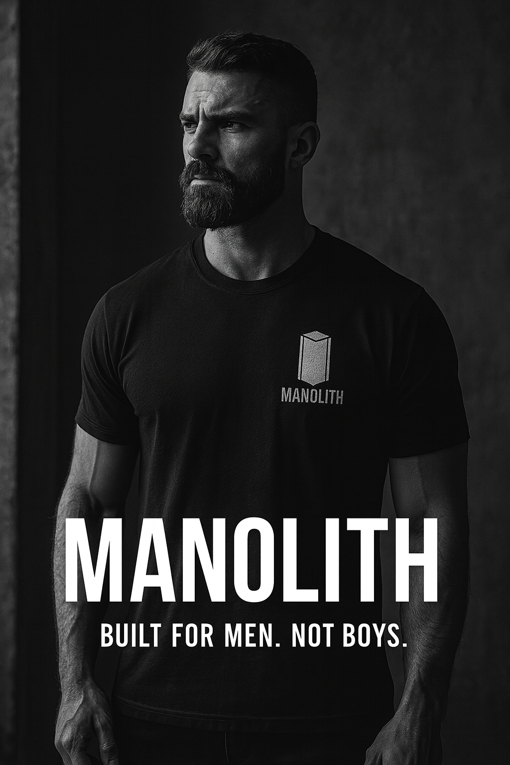 “They call discipline toxic, strength outdated, masculinity dangerous. We call it essential. MANOLITH exists for the few who refuse to soften.”